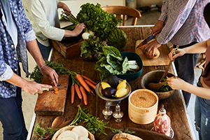 Everybody eats, so try getting together with friends and family to cook and share a meal; everyone brings their own experiences, culture and traditions.