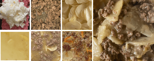 Break up and stir occasionally as hamburger browns (if hamburger has high fat content, drain excess fat before proceeding).