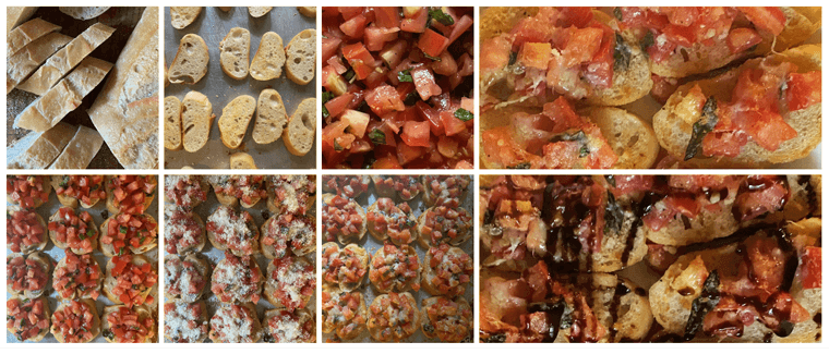 Combine tomatoes, basil, vinegar, salt, pepper and remaining garlic and olive oil in a small mixing bowl.