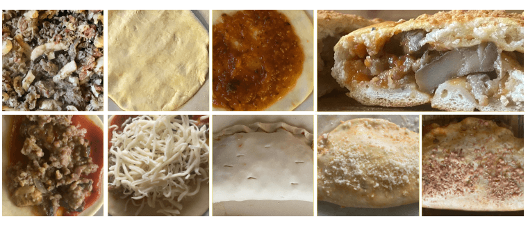 Fold the dough over the toppings and crimp the edges; transfer to prepared baking sheet.