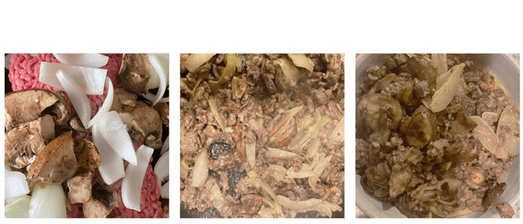 Place hamburger, mushrooms, garlic and onion in a medium frying pan on medium heat.