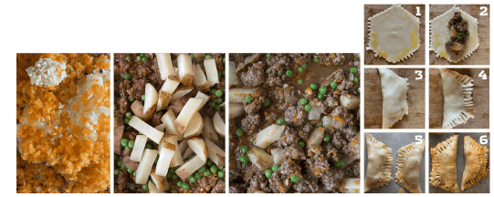Fold each crust in half over the filling. Using a fork, firmly press the edges together; arrange on a baking sheet.