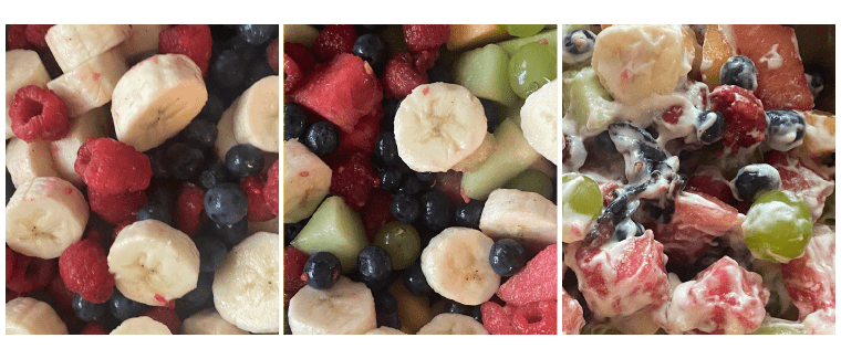 Variation 1) Stir plain or vanilla yogurt into the sauce before adding to the fruit 2) Choose colors or types of fruit to follow a theme, such as: patriotic, all citrus, all berries, all melon, etc.