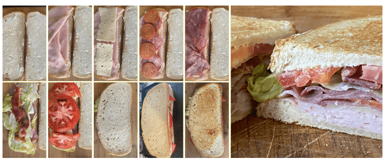 Assemble the sandwiches by layering chicken, cheese, salami, pepperoni, pastrami, lettuce, bacon and tomato on half the slices (mayonnaise side up); top with remaining bread slices (mayonnaise side down).