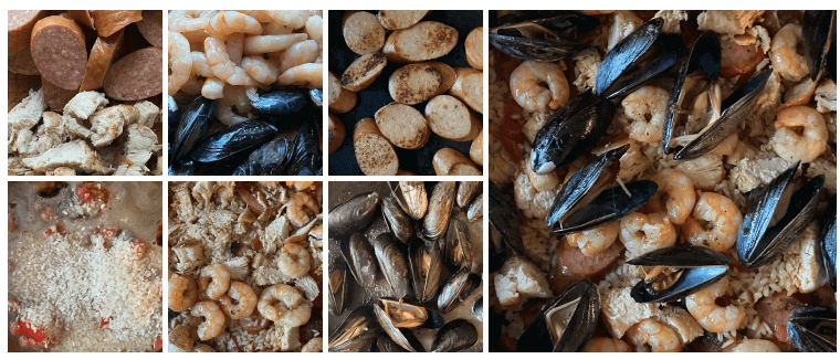 Using a slotted spoon, transfer the shrimp to the cooked rice skillet.