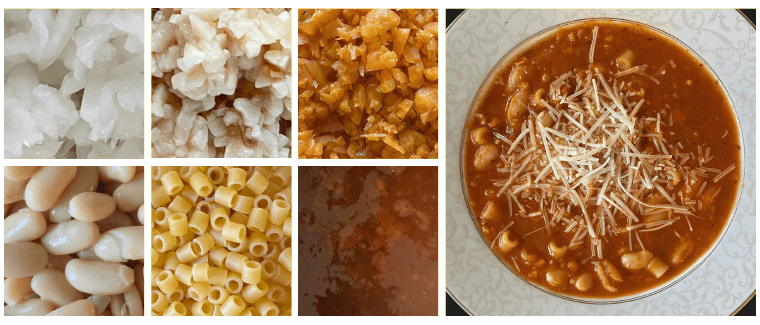 Stir in uncooked pasta and cooked beans; return to a bubbly boil over medium heat; let cook ~5 minutes, until pasta is al dente.