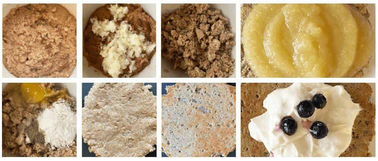 Spoon ~¼ cup mixture into skillet or on griddle, spreading slightly.