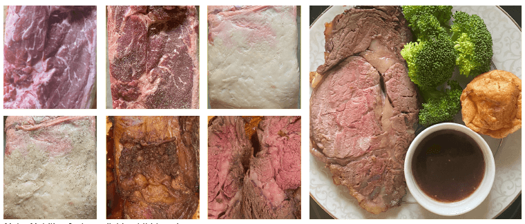 Preheat oven to 375°F; generously season your roast with salt, pepper and garlic powder on all meaty sides and ends.