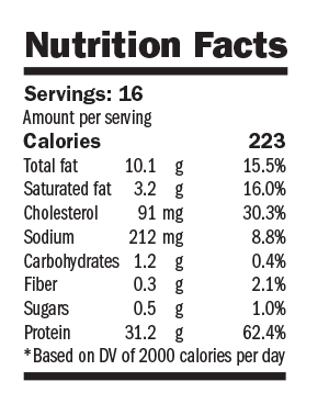 Nutrition Facts: Servings: 4; Amount per serving: Calories 294; Total fat 12.3g 18.9%; Saturated fat 7.5g 37.5%; Cholesterol 84mg 28.0%; Sodium 1439mg 60.0%; Carbohydrates 25.9g 8.6%; Fiber 4.2g 30.0%; Sugars 15.2g 30.4%; Protein 20.4g 40.8%; Based on DV of 2000 calories per day