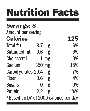Nutrition Facts: Servings: 4; Amount per serving: Calories 385; Total fat 18.12g 28%; Saturated fat 5g 25%; Cholesterol 100mg 33%; Sodium 664mg 28%; Carbohydrates 14g 5%; Fiber 2.2g 16%; Sugars 5g 10%; Protein 35g 70%; Based on DV of 2000 calories per day