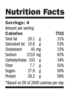 Nutrition Facts: Servings: 8; Amount per serving: Calories 172; Total fat 7.4g 11.4%; Saturated fat 1.1g 5.5%; Cholesterol 0mg 0.0%; Sodium 166mg 6.9%; Carbohydrates 24.5g 8.2%; Fiber 6.2g 44.3%; Sugars 1.2g 12.4%; Protein 4.4g 8.8%; Based on DV of 2000 calories per day